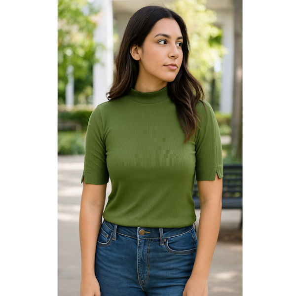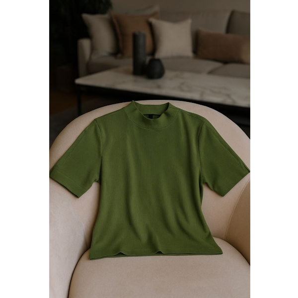 BLUSA CANELADA GOLA ALTA COM ABERTURA NA MANGA