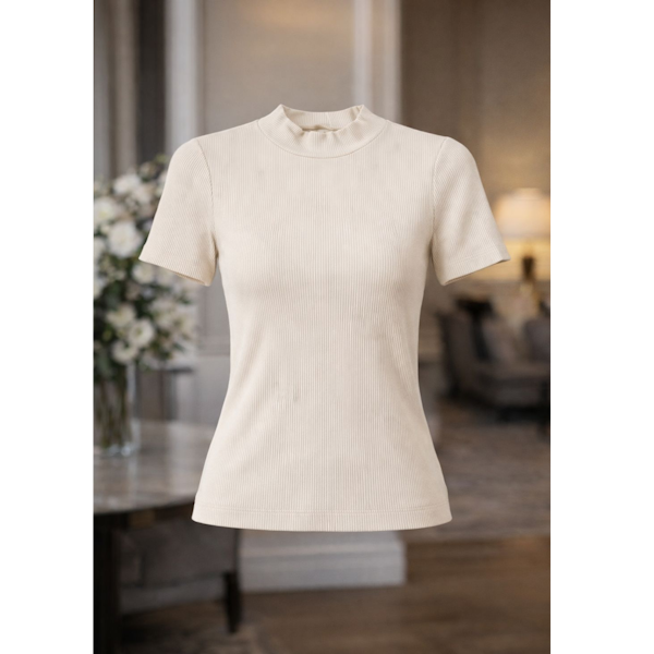 Elegância e conforto se encontram nesta blusinha de manga curta com gola alta, confeccionada em tecido canelado de toque macio e caimento justo ao corpo. Uma peça versátil, moderna e cheia de estilo, perfeita para compor desde looks casuais até produções mais sofisticadas.