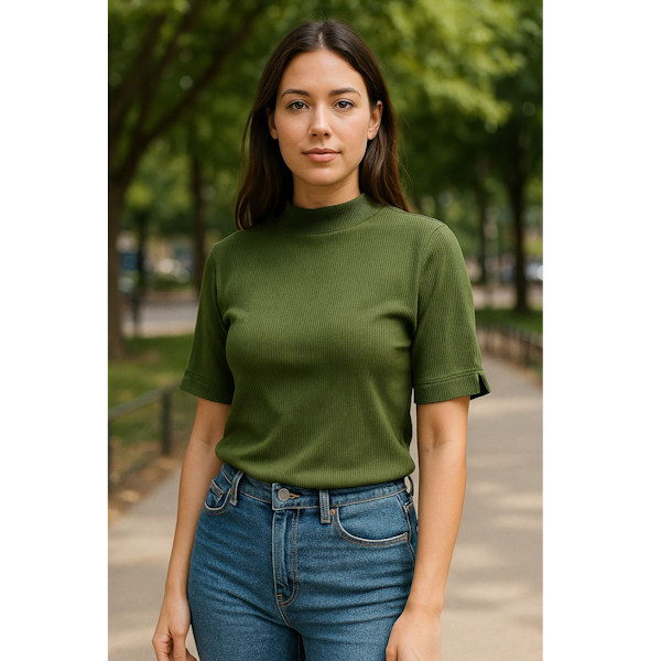 Aposte em uma peça que une estilo, conforto e versatilidade. Esta blusa em malha canelada possui toque macio e modelagem moderna, com gola alta e mangas curtas, ideal para compor produções elegantes ou casuais em qualquer estação.