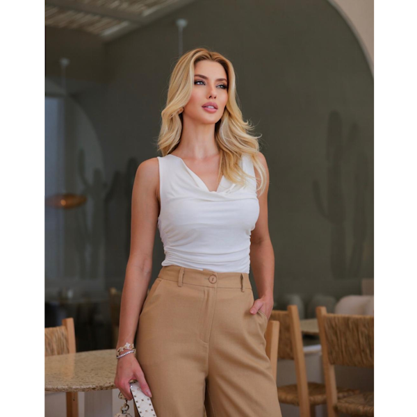 Elegante, versátil e atemporal, a Calça Joana Lina, uma Pantalona em Linho na cor areia é a peça perfeita para compor looks sofisticados com conforto. Com modelagem ampla e cintura alta, ela valoriza a silhueta e garante um caimento impecável. Possui fechamento frontal com botão, passantes para cinto e bolsos traseiros que completam o design com charme e praticidade.